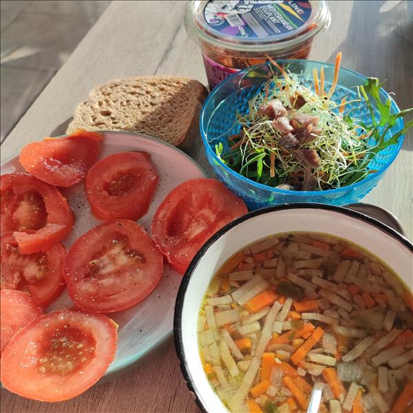 Pompoen/wortelsoep met gember en kokosmelk + Witloofsoep met pastinaak